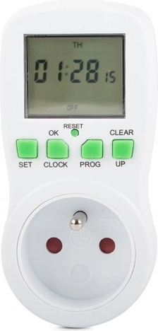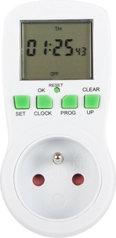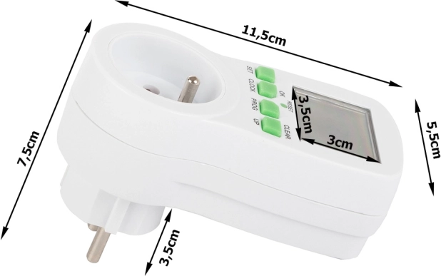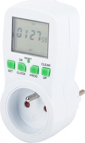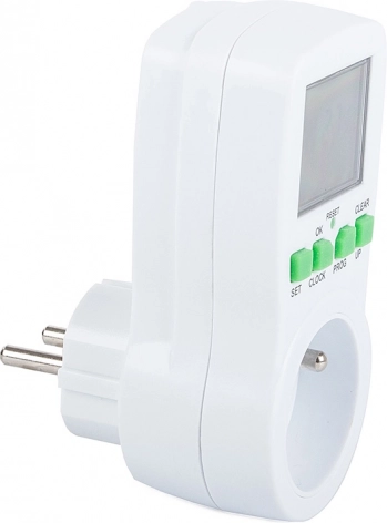 Praktische digitale stopcontact-timer met een groot LCD-display waarmee u apparaten automatisch kunt in- en uitschakelen volgens het ingestelde programma. Bespaart energie, verhoogt de veiligheid en het comfort, biedt tot 16 programma’s, een willekeurige schakelmodus om aanwezigheid te simuleren en aftellen. Maximale belasting 3680 W / 16 A en nauwkeurige tijdregeling in 24/12 u-modus.