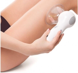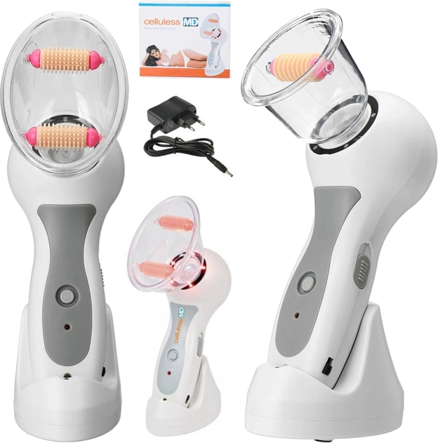 De vacuümmassager CELLULESS MD combineert vacuümmassage met het effect van massagerolletjes en rode leds, die bijdragen aan een helderder en gladder huidbeeld. Regelmatig gebruik helpt de zichtbare tekenen van cellulitis te verminderen, verbetert de microcirculatie en verstevigt de contouren op probleemzones zoals dijen, billen en armen.