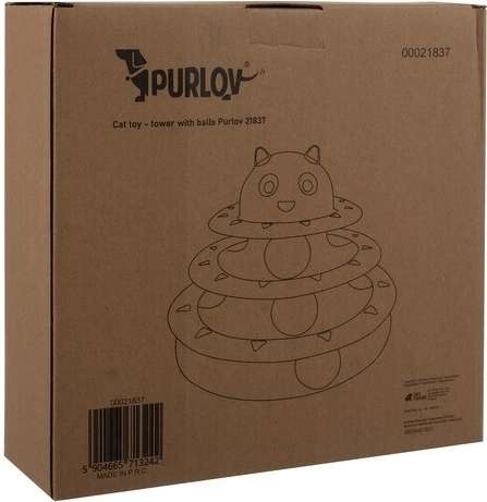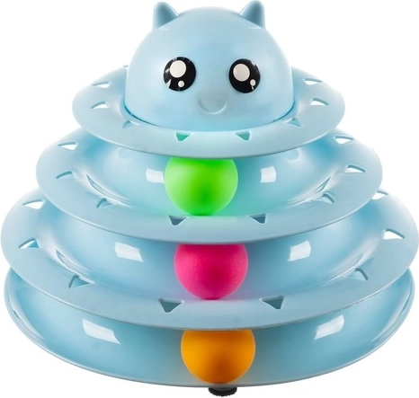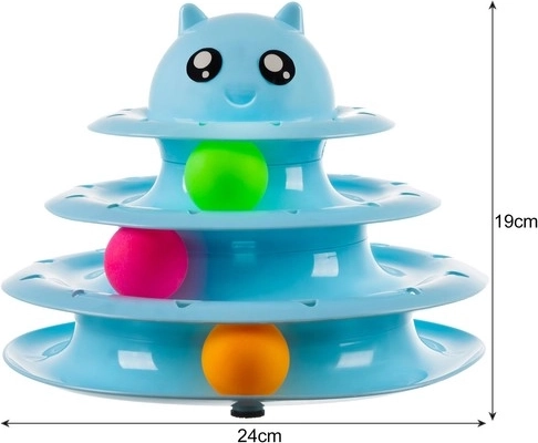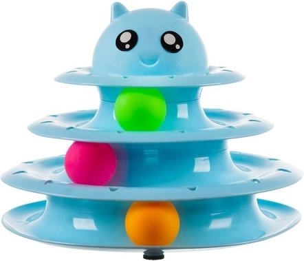 De toren bestaat uit drie niveaus waar kleurrijke ballen op zitten. De ballen draaien gemakkelijk en nodigen katten uit om te spelen. De toren is gemaakt van duurzaam plastic en is langdurig bestand.