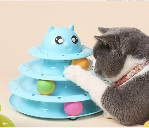 Het systeem van drie niveaus en bewegende ballen biedt katten fysieke activiteit en mentale stimulatie.