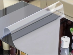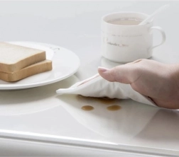 De mat is volledig transparant en oogt als een glazen laag, terwijl hij oppervlakken beschermt tegen krassen en morsen.