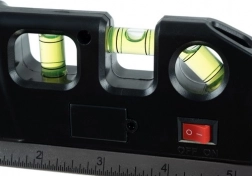 De waterpas heeft een ingebouwde uitschuifmeter van 250 cm met een dubbelzijdige schaalverdeling in centimeters/mm en voeten/inches.