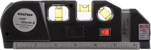 Laserwaterpas van het merk Bigstren met ingebouwde meter van 250 cm is de ideale tool voor nauwkeurige metingen en het uitzetten van lijnen. Hiermee kunt u gelijktijdige horizontale en verticale vlakken bepalen en geschikt voor zowel professioneel als thuisgebruik.