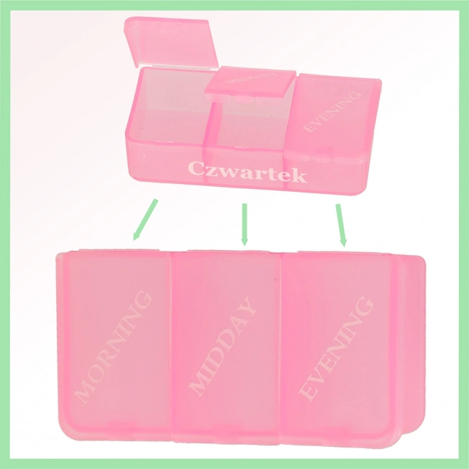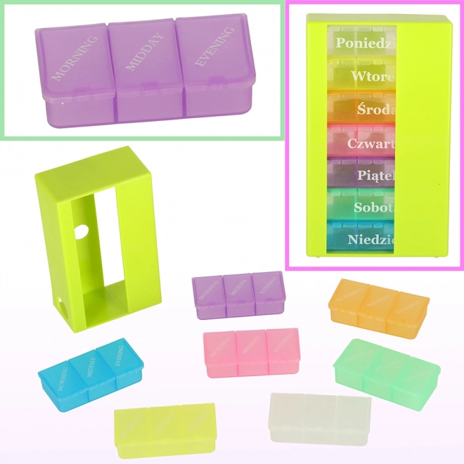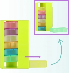 Elk compartiment is kleurrijk gemarkeerd en voorzien van labels, waardoor het identificeren van de dag waarvoor het bedoeld is eenvoudiger wordt. Praktische verpakking, ideaal voor reizen of dagelijks gebruik.