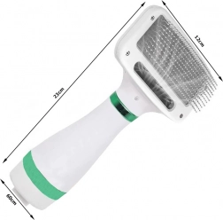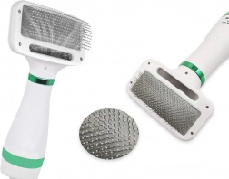 Bespaar tijd en gedoe bij de vachtverzorging. Deze 2-in-1 droogborstel droogt en ontwart tegelijkertijd, ideaal na het bad of voor snel drogen na een regenachtige wandeling. Fijne, dunne en gebogen metalen pinnetjes dringen diep in de vacht, verwijderen losse haren en vuil en blijven vriendelijk voor de huid.