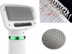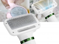 Dunne, gebogen pinnetjes dringen in de vacht door, verwijderen klitten en vuil zonder de huid te irriteren.