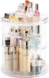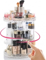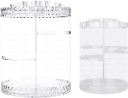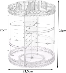 Deze veelzijdige standaard met draaiconstructie biedt overzichtelijke opslag voor cosmetica en sieraden. Transparant acryl geeft je ruimte een moderne look en helpt je snel het gewenste product te vinden. Dankzij de 360° rotatie is alles met één draai binnen bereik.