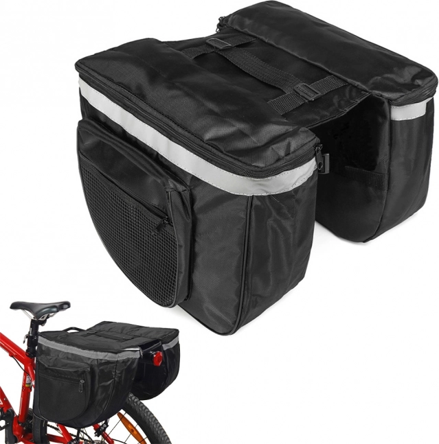 Multifunctionele fietstas ideaal voor langere fietstochten. Maakt het eenvoudig om kleding, kleine spullen of voedsel in te pakken dankzij twee grote compartimenten en kleinere ritsvakken.