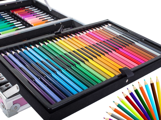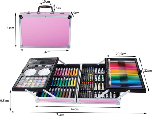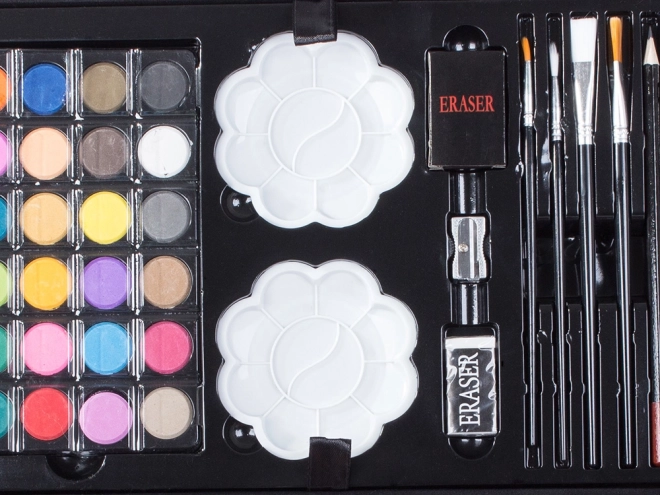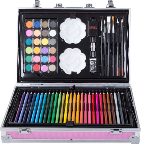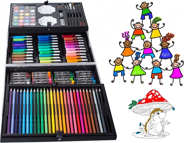 Ontdek de wereld van kleuren en creativiteit met onze creatieve set opgeborgen in een praktische koffer. Deze set is uitgerust met alles wat nodig is voor schilderen en tekenen: