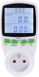 Een praktische stekker-energiemeter die u helpt het elektriciteitsverbruik en de kosten van aangesloten apparaten in realtime te volgen. Dankzij het achtergrondverlichte display, de nauwkeurigheid ±2 % en de capaciteit van 16 A / 3680 W spoort u eenvoudig energieverslindende apparaten op en stelt u een effectief besparingsplan op.