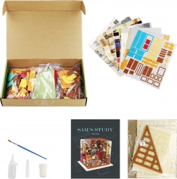 Alles wat je nodig hebt zit in de doos – van voorgesneden onderdelen van multiplex en papieren en stoffen elementen tot lijm, verf en een kwast. De bouw omvat schilderen en lijmen, werken met kleine details en geduldig assembleren, wat het een ideaal project maakt voor een rustig weekend.