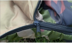 Praktische mummieslaapzak in tinten groen en bruin die perfect opgaat in de natuur. Dankzij de capuchon met trekkoord wordt de bescherming tegen kou versterkt en neemt het nachtelijke comfort toe. De rits over de volledige lengte maakt zowel gemakkelijk ventileren als volledig openleggen tot deken mogelijk.