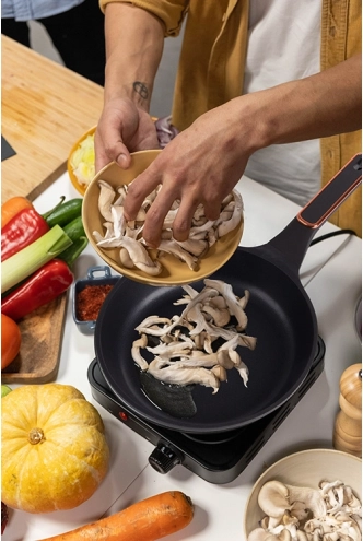 Ontdek een hulp in de keuken waarmee koken sneller, gezonder en comfortabeler wordt. De pan van drukgegoten aluminium geleidt warmte uitstekend, zodat ingrediënten gelijkmatig dichtschroeien zonder aan te branden. De hoogwaardige antiaanbaklaag minimaliseert de behoefte aan olie en versnelt het schoonmaken.