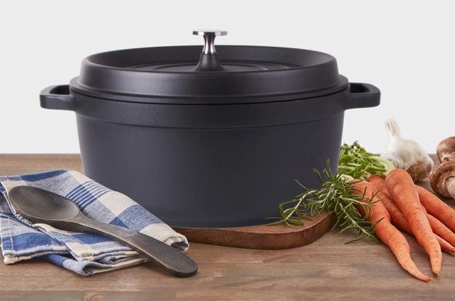 Het hoogwaardige aluminium gietwerk met deksel bevordert een gelijkmatige warmteverdeling, waardoor gerechten overal even goed garen en heerlijk sappig blijven.