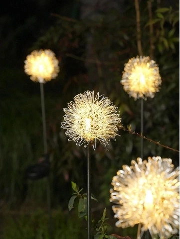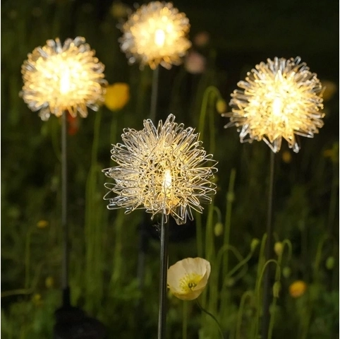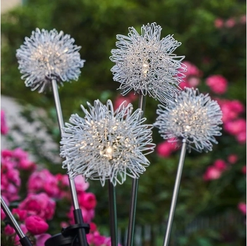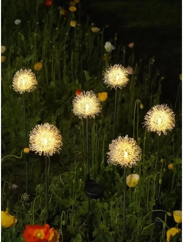 Dicht geplaatste LED’s in een fijne draadconstructie creëren na zonsondergang een opvallende gloed die doet denken aan een paardenbloem en geven je tuin direct extra uitstraling.
