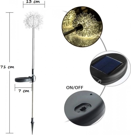 De XXL zonne- paardenbloem combineert een indrukwekkend, door de natuur geïnspireerd design met praktische, onderhoudsarme werking. Gevlochten metalen draadjes met dicht geplaatste 120 LED’s creëren na zonsondergang het effect van een stralende bloem die je tuin een uniek cachet en een prettige sfeer geeft. De lamp schakelt bij schemering automatisch in en vereist dankzij de zonnevoeding geen bekabeling of extra energiekosten.