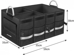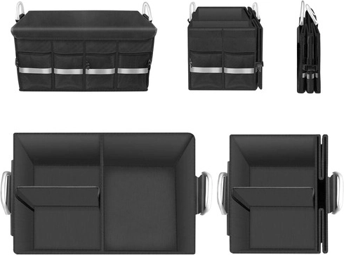 Kwalitatieve materialen en doordachte details garanderen een lange levensduur. Het slijtvaste Oxford 600-weefsel, MDF-verstevigingen en metalen handgrepen zijn bestand tegen dagelijks gebruik. Vier voorste gaasvakken en een zijvak met klittenbandsluiting bieden plaats aan kleine spullen, reflecterende elementen vergroten de zichtbaarheid. Opgevouwen neemt hij minimaal ruimte in – ideaal voor elke auto, SUV en bestelwagen.