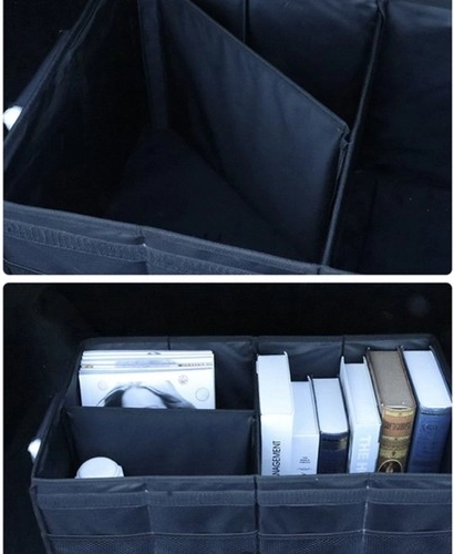 De stevige MDF-bodem stabiliseert de lading en het opvouwbare deksel met klittenband beschermt de inhoud, ook wanneer het volume van de organizer wordt verkleind. Niets valt eruit en de kofferbak blijft schoon.