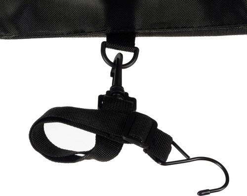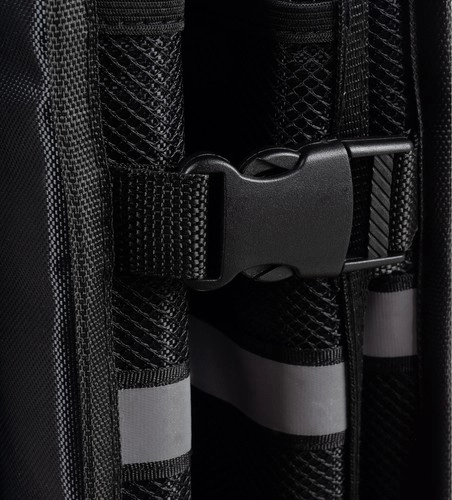 Robuuste metalen handgrepen maken van de organizer een praktische tas. Zonder overpakken haal je alles in één keer eruit en draag je het comfortabel; reflecterende elementen verhogen de veiligheid.