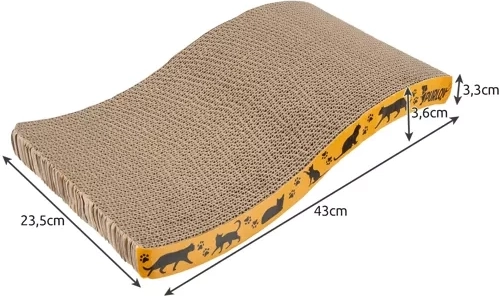 Dankzij de ergonomische golfvorm is de krabplank comfortabel om op te rusten en voor korte dutjes. Het lichte ontwerp maakt het gemakkelijk te verplaatsen naar de plek waar uw huisdier zich het liefst ophoudt. Het design met kattensilhouetten past in een modern interieur.