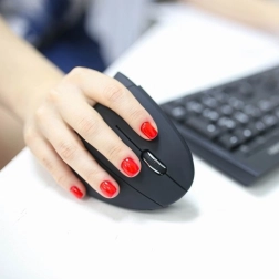 De verticale constructie houdt de hand in een neutrale positie en vermindert spanning in de onderarmspieren – ideaal voor lange werkdagen.