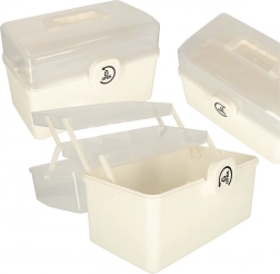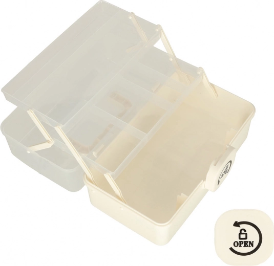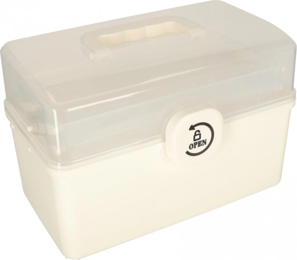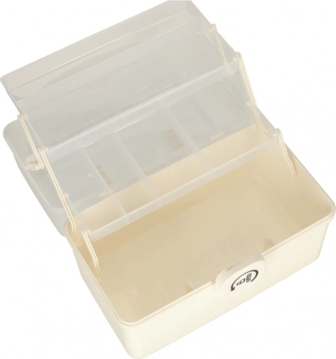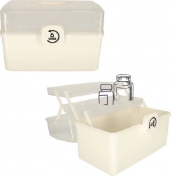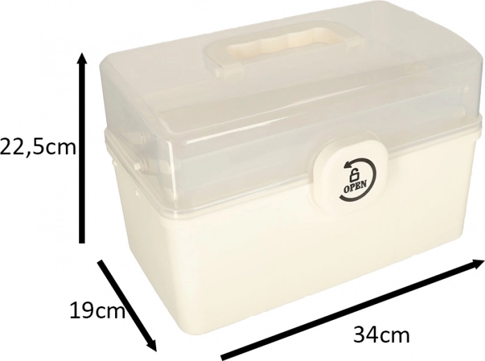 Het transparante deksel maakt het mogelijk alles snel te vinden zonder de organizer te openen. De praktische handgreep zorgt voor gemakkelijk transport, niet alleen thuis, maar ook onderweg of op reis. De binnenuitrusting omvat hoogteverstelbare verdelers voor betere organisatie.