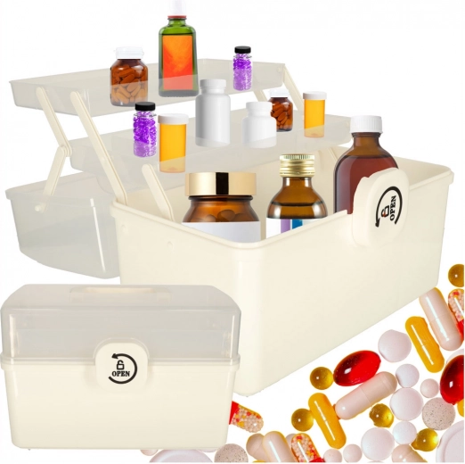 Het veiligheidsslot beschermt medicijnen tegen toegang door kinderen. De organizer is ook geschikt voor het opbergen van andere kleine items zoals naaibenodigdheden.