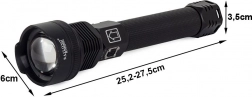 Met beschermingsgraad IPX5 kan de zaklamp moeiteloos regen, vocht en modder aan. De elektronica biedt 3 standen (100 %, 50 %, stroboscoop) en een praktische LED-indicator informeert over de laadstatus van de batterijen. De voeding wordt verzorgd door 2× 26650-accu's met de mogelijkheid tot USB-opladen, zodat u in elke situatie klaar bent.