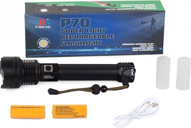 - zaklamp P516-P70, 2× 26650-accu's, USB-kabel, originele verpakking