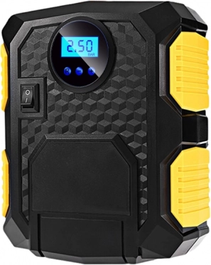 Compacte en krachtige 12 V autocompressor voor snel oppompen van banden en andere voorwerpen. Biedt een maximale druk van 150 psi/10 bar, luchtstroom 27 l/min, een overzichtelijk lcd-display met mogelijkheid tot instellen van de doeldruk en automatisch uitschakelen zodra deze is bereikt. Het praktische led-licht vergemakkelijkt werken in het donker, voeding via de 12 V sigarettenaansteker.
