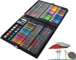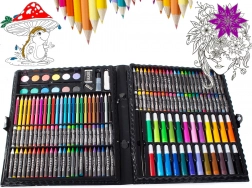 De set bevat: 48 waskrijtjes, 48 oliepastels, 24 viltstiften, 24 kleurpotloden, 12 aquarelverfnapjes, een penseel, palet, puntenslijper, gum, lijm, corrector, paperclip en 5 vellen A5-papier. Dankzij deze rijke uitrusting maak je eenvoudig tekeningen, illustraties en schilderijen en ontwikkel je creativiteit en fijne motoriek.