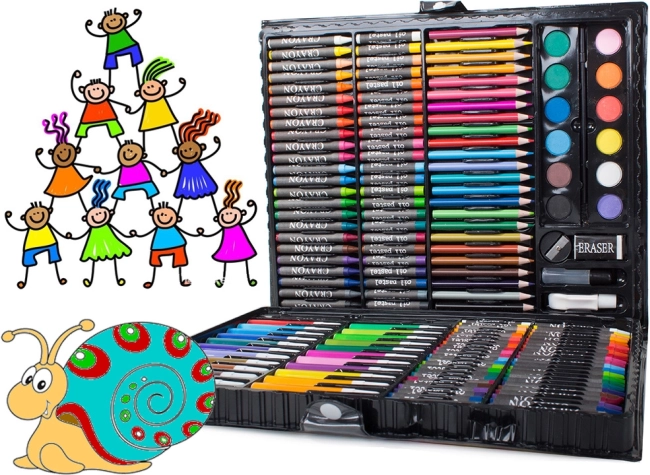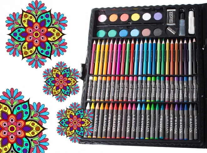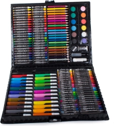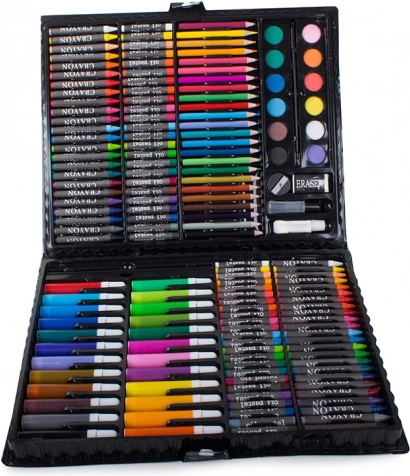 Van potloden en stiften tot aquarelverf – 168 delen voor tekenen, inkleuren en schilderen, netjes opgeborgen in een overzichtelijke koffer.