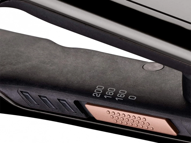 Kies 160 °C voor fijn haar of 180–200 °C voor dik en stevig haar. De warmte wordt gelijkmatig verdeeld voor milde stylingresultaten.