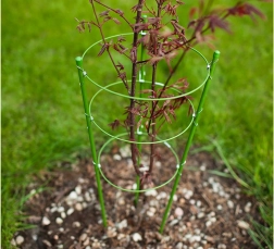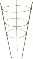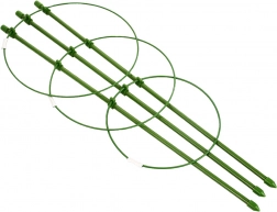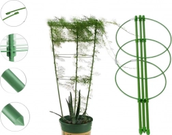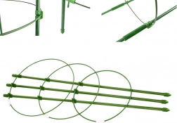 Deze ronde metalen steun is ideaal voor tuinliefhebbers die hun planten rechtop en in geweldige conditie willen houden. De constructie bestaat uit drie metalen ringen die eenvoudig rond de stengel van de plant kunnen worden geplaatst en aan de grond worden bevestigd, waardoor veilige ondersteuning voor verticale groei wordt geboden.