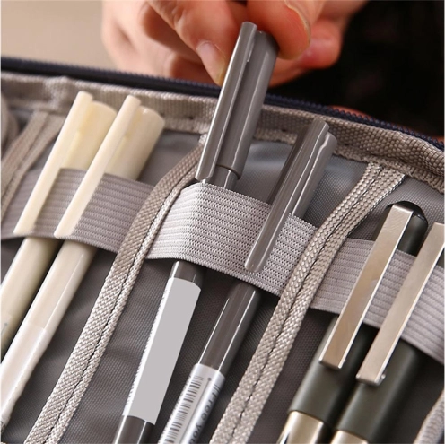 Het duurzame textiele materiaal beschermt de inhoud tegen krassen, terwijl de rondomlopende rits voorkomt dat kleine spullen ongewenst eruit vallen. Dankzij het ingetogen grijze design is hij geschikt voor werk, studie en reizen.