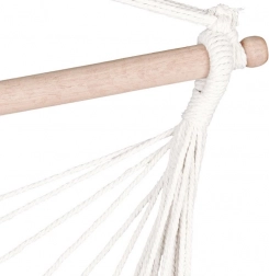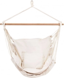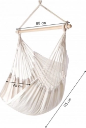 Dankzij de duurzame constructie en de stevige houten steunbalk kan de stoel belastingen tot 150 kg dragen en zorgen speciaal dik bevestigd touwen voor veiligheid en comfort tijdens gebruik.