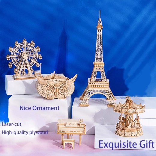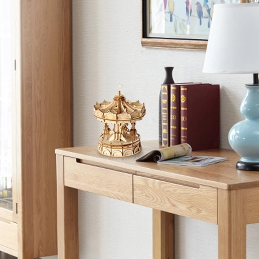 Ontdek de charme van traditioneel vakmanschap met het 3D houten carrouselmodel. Deze set biedt een complete ervaring van begin tot eind. Kwalitatieve en veilige materialen garanderen een aangenaam bouwproces en het eindproduct verandert in een indrukwekkende decoratie.