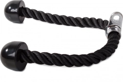 Het touw maakt een breed scala aan oefeningen mogelijk, zoals roeien, knieliften, Franse presses en meer. Dankzij het ontwerp kan het een maximale belasting van 200 kg aan en kan het gemakkelijk worden bevestigd met de universele metalen haak.
