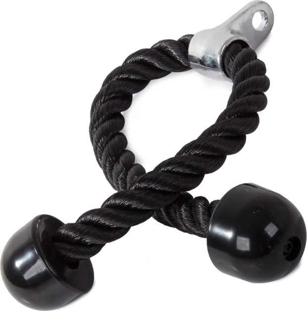 Dit tricepstouw is gemaakt van dicht geweven nylonvezels, wat duurzaamheid en een lange levensduur garandeert. Het is ontworpen voor bodybuilding-oefeningen van armen en buikspieren, waardoor het een universele aanvulling is voor fitnessapparatuur en -machines.