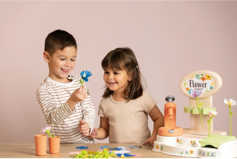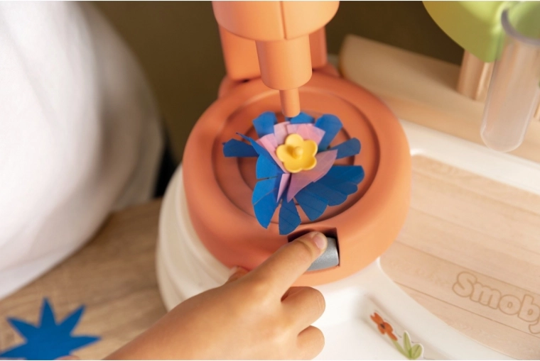 Smoby Bloemenmaker is een unieke doe-het-zelf set voor kinderen, die een machine bevat voor het maken van bloemen en kinderen in staat stelt verschillende bloemen tot boeketten te combineren. Met uitgebreide accessoires en eenvoudig gebruik is dit speelgoed ideaal voor elke kleine bloemist.