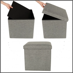 De grijze opvouwbare opbergpoef is een ideale aanvulling voor elke woonkamer, gang of kinderkamer. Hij beschikt over schuimvulling, waardoor hij comfortabel is om urenlang op te zitten. Naast comfort biedt hij ook een slimme opbergruimte voor diverse spullen, speelgoed, schoenen of dekens.