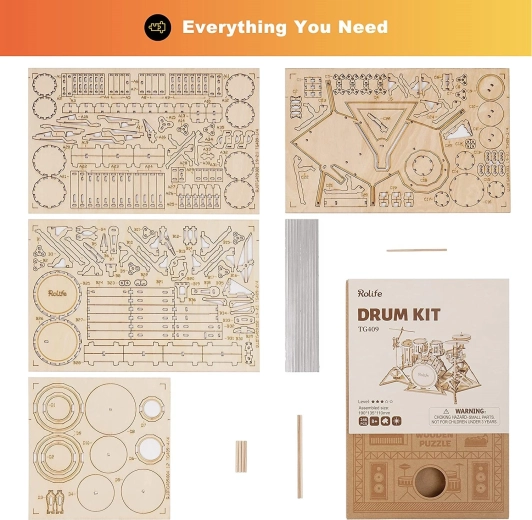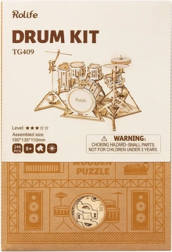 Ontdek de bouwmagie van de ROLIFE-serie van ROBOTIME. Deze 3D houten puzzel van een drumstel biedt 246 zorgvuldig vervaardigde onderdelen van 2 mm lindemultiplex. De onderdelen druk je eenvoudig uit de platen en met stapsgewijze montage creëer je een gedetailleerd model dat technisch inzicht, verbeeldingskracht en fijne motoriek ontwikkelt.