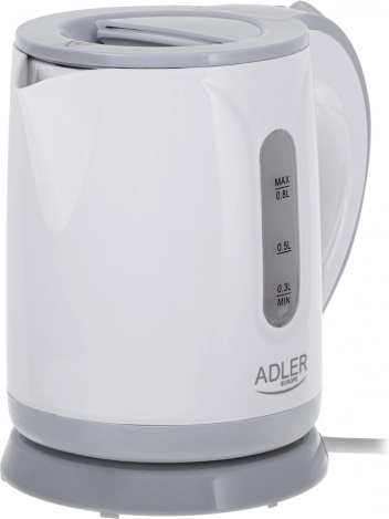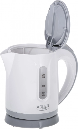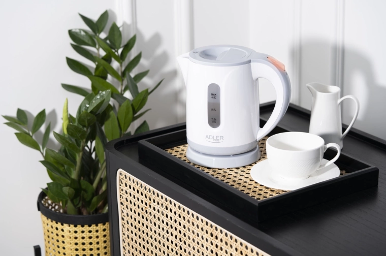 De compacte reiswaterkoker van ADLER met een inhoud van 0,8 l is ideaal voor in de keuken, op kantoor en op de campus. Biedt een vermogen van 850 W voor zuinig gebruik, automatische uitschakeling, droogkookbeveiliging en een duidelijke waterpeilaanduiding. De vlakke roestvrijstalen verwarmingsplaat en het antikalkaanslagfilter zorgen voor een zuivere smaak van het water en eenvoudig onderhoud.