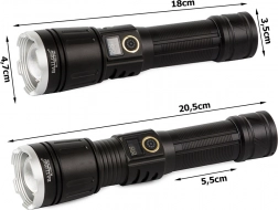Ontdek de voordelen van deze hoogwaardige zaklamp, gemaakt van vliegtuigaluminium en voorzien van een antislip oppervlak. Beschikt over een powerbankfunctie, wat betekent dat u in noodgevallen uw mobiele apparaten kunt opladen. Met de krachtige zoom die een smalle bundel met een bereik tot 1000 meter mogelijk maakt, is dit het ideale hulpmiddel voor het verlichten van grote ruimtes.