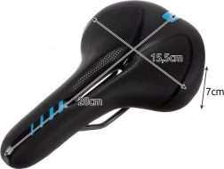 Zacht en comfortabel: Het zadel is gemaakt van zacht polyurethaanschuim, wat zorgt voor rijcomfort en de gevormde contouren bieden gemak. Dit ontwerp ondersteunt de juiste lichaamshouding tijdens het fietsen, wat belangrijk is voor langere ritten.