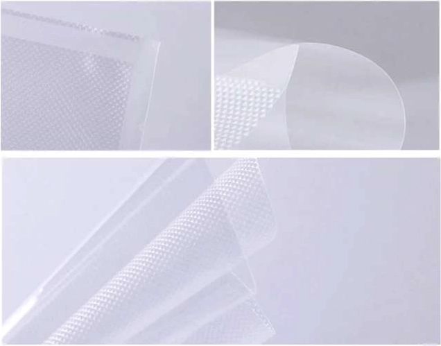 De zakken hebben een gladde zijde voor productpresentatie, ideaal voor zowel thuis- als commercieel gebruik. Het product is tweezijdig – één zijde heeft een diep reliëf en de andere is volledig glad en transparant, waardoor klanten eenvoudig de kwaliteit en versheid van het product kunnen controleren.