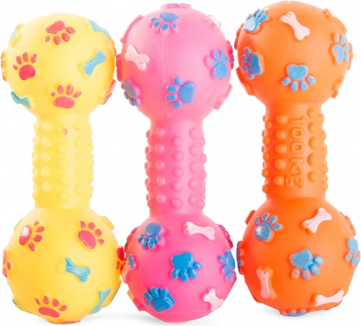 Maak kennis met het piepende kauwspeeltje in de vorm van een halter, dat al snel een favoriet onderdeel van de speeltijd van je huisdier zal worden. Dit duurzame en lang meegaande speeltje is ideaal voor honden, katten en andere huisdieren die iets nodig hebben om mee te spelen of op te kauwen wanneer ze alleen thuis zijn.