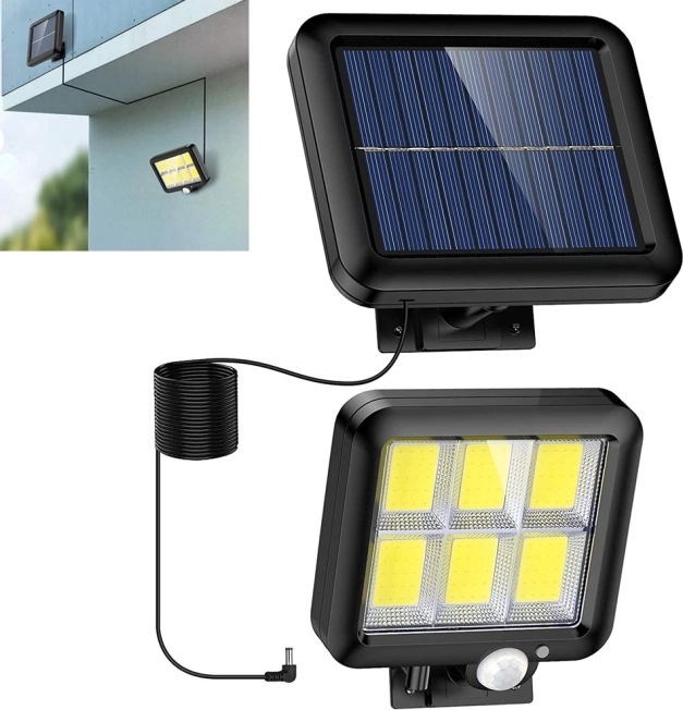 Zonnepaneellamp met 120 LED-diodes biedt hoge lichtopbrengst en energiebesparing dankzij zonne-energie. Met functies zoals bewegingssensor en weersbestendigheid is het ideaal voor buitengebruik.