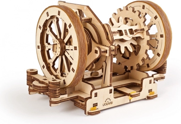 Na het bouwen geniet u van de vloeiende werking van de houten tandwieltreinen en de mogelijkheid om het mechanisme handmatig te activeren, zonder lijm.