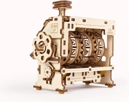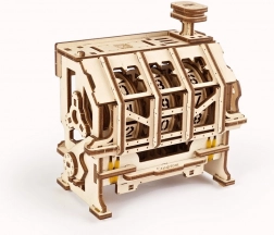 Deze elegante houten teller van triplex laat je eenvoudig oefeningen, personen, objecten of verschijnselen registreren binnen het bereik 0–999. Mechanica-liefhebbers zullen genieten van het trekmechanisme, een principe bekend van snelheidsmeters en projectoren, met oorsprong tot bij Heron van Alexandrië. Het model is gecertificeerd door STEM.org als geschikt leermiddel en dankzij de UGEARS-app met AR (augmented reality)-ondersteuning kun je de werking interactief verkennen.